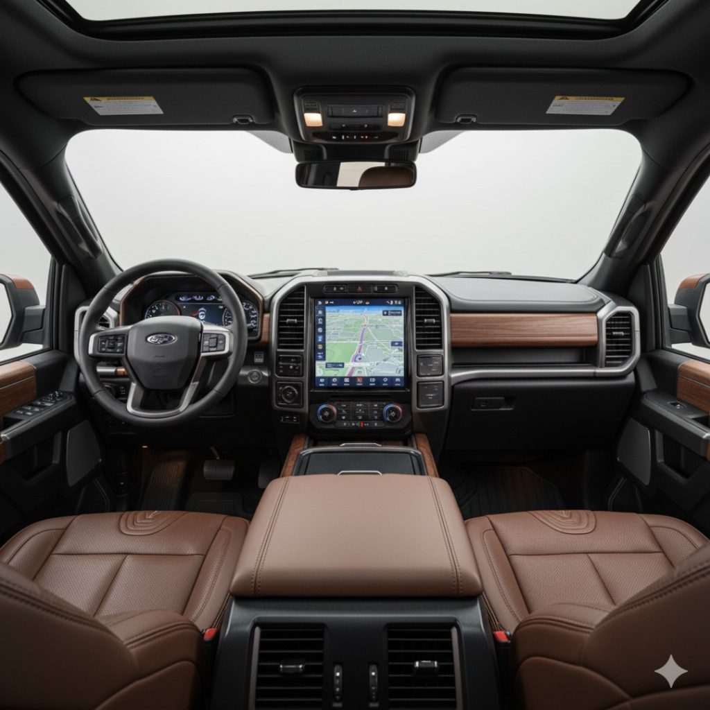 • Dashboard: A massive 12.0-inch SYNC 4 touchscreen is standard across the board, featuring the smoothest interface in the business. The materials range from rugged, high-quality plastics in the XL to hand-stitched leather and genuine wood in the Platinum.