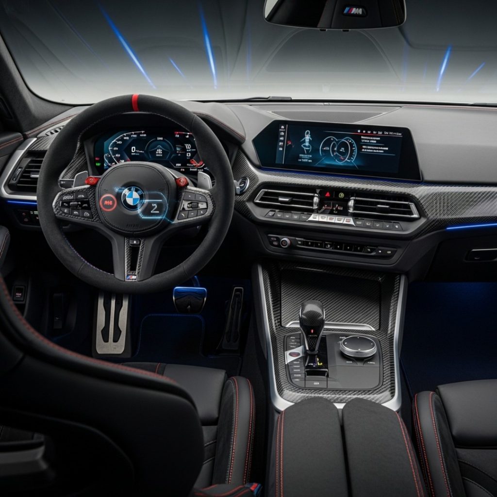 - Features: * M-Specific HUD: Projecting lap times and G-force meters on the windshield.